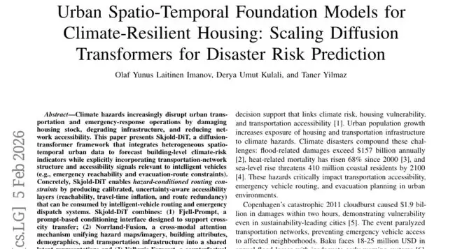 为了解决这个问题,研究团队开发了一个名为Skjold-DiT的人工智能系统。这个名字来源于北欧神话中的"盾牌",寓意为城市提供保护。这个系统就像一个超级智能的城市"天气预报员",但它预测的不是明天会不会下雨,而是未来十年内每栋建筑遭受洪水或热浪的具体风险,以及这些风险如何影响紧急车辆的通行能力。