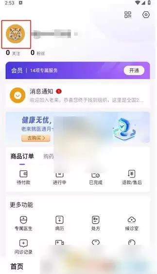 2. 进入“我的”页面后,接下来需要点击左上角的【头像】。