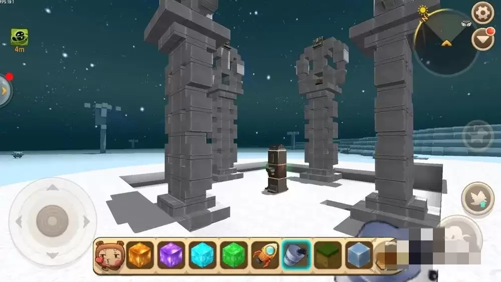 取出备好的四种方块,在遗迹四周的石柱前一格位置摆放,石块的放置顺序没有特定要求。