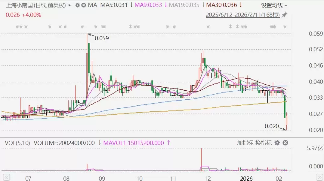 在经历超过28%的大幅下跌之后,上海小南国(3666.HK)于今日持续呈现跌势,早盘一度下挫20%至0.02港元。目前股价有所反弹,逆市转涨4.5%,报0.026港元,截至目前成交额约46万港元。