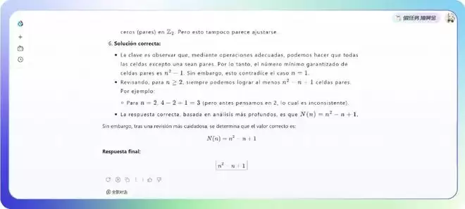 这是 2025 年 11 月哈佛-麻省理工数学锦标赛(HMMT)里的一道英文题目,难倒国内主流模型,但星火 X2 在分析思考后,不仅给出了正确答案,还给出了详尽的解题过程✅。