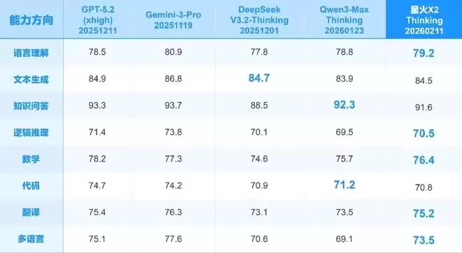 此次星火 X2 通用能力全面升级,整体能力对标国际顶尖模型水平,在数学、推理、语言理解、智能体等能力上媲美国际最优;同时,星火 X2 的 130+ 多语言综合能力继续提升,拉美、东盟等地区重点语种效果保持业界领先水平,为跨语言教育、医疗与产业应用提供可靠支撑。