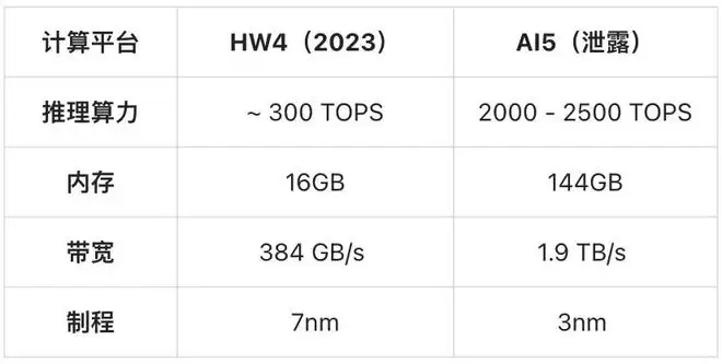 2025 年 6 月,一份疑似来自三星供应链的文档在韩国科技社区流出,列出了 AI5 的核心参数: