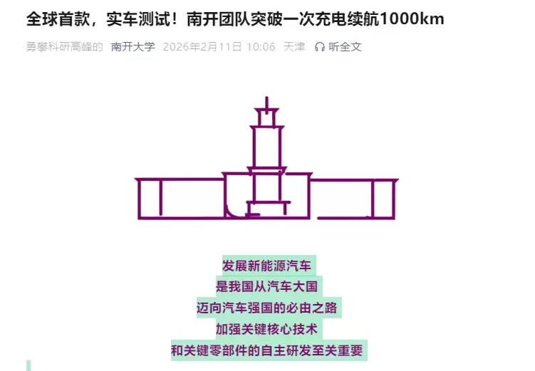 南开团队突破1000公里续航电池,解决电动车里程焦虑