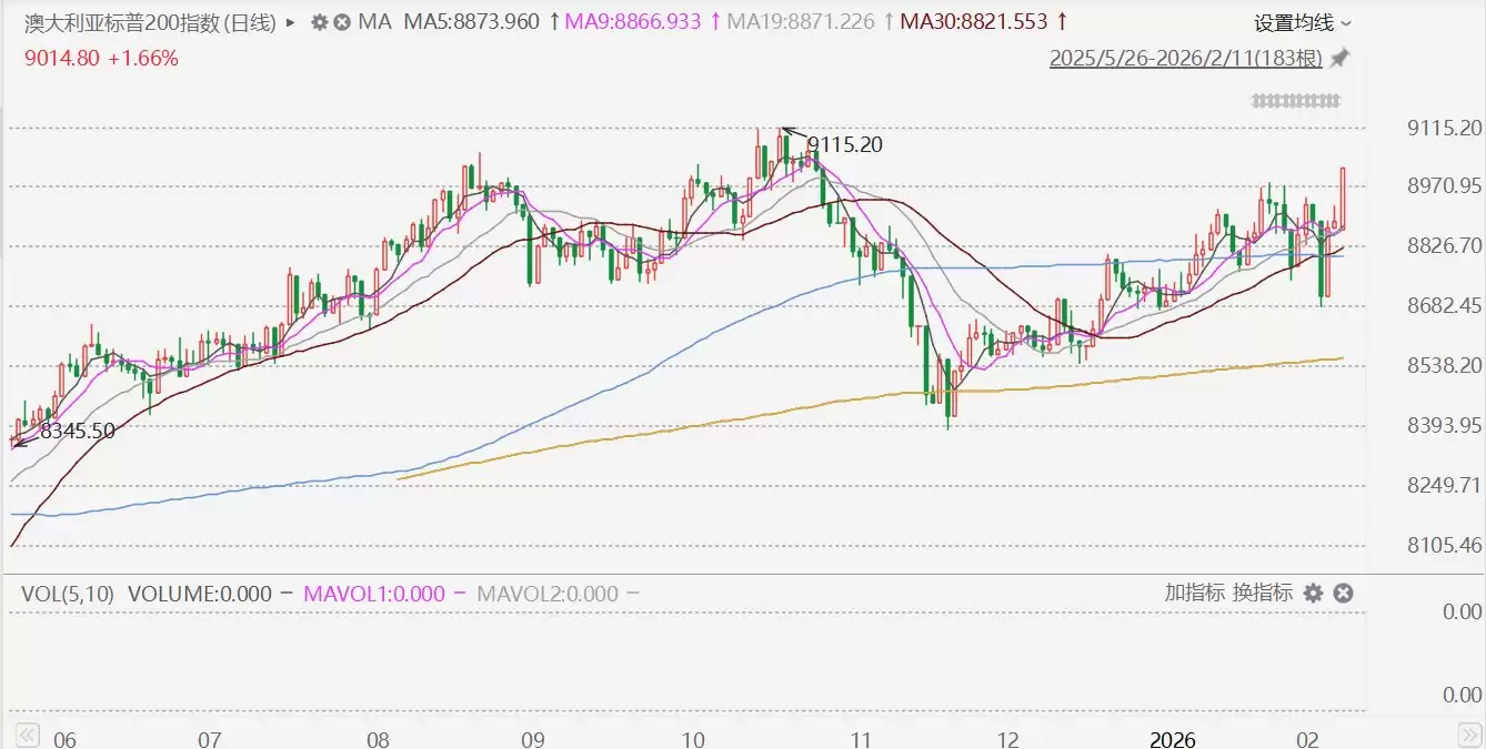 格隆汇2月11日|澳大利亚S&P/ASX200指数收盘上涨147.40点,涨幅达1.66%,报收9014.80点,创下去年10月以来新高。