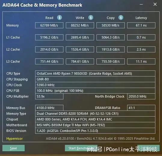 理论性能与游戏性能我们还是简单地测试了下,B850M刀锋钛MAX能够完美释放9850X3D的全部潜能,性能表现与我们之前首发时使用的微星X870E CARBON Wi-Fi暗黑主板性能相当。