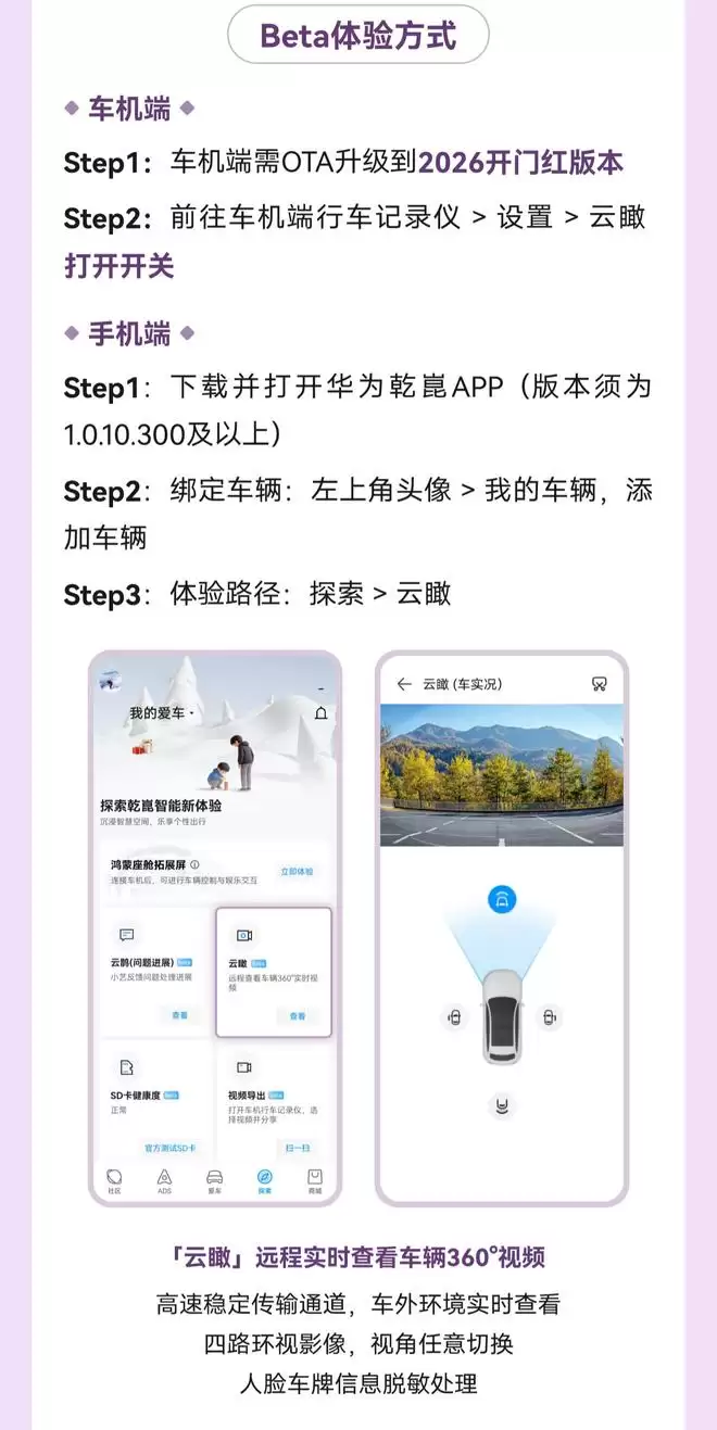 华为乾崑云瞰开启Beta测试:360°视频远程实时查看车辆