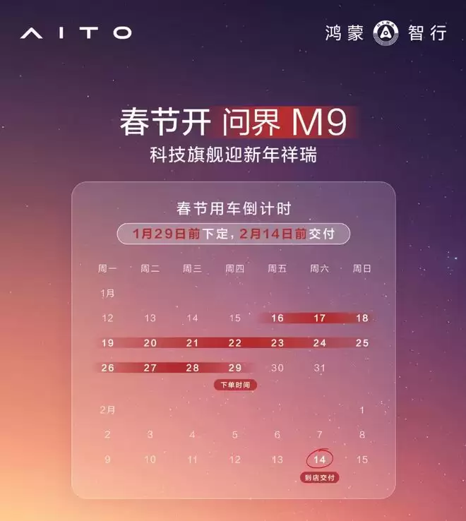 问界M9开启极速交付通道,图片来源:问界最新