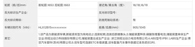 LXA6503BEVW03企业申报车型公示详情,图片来源:工信部