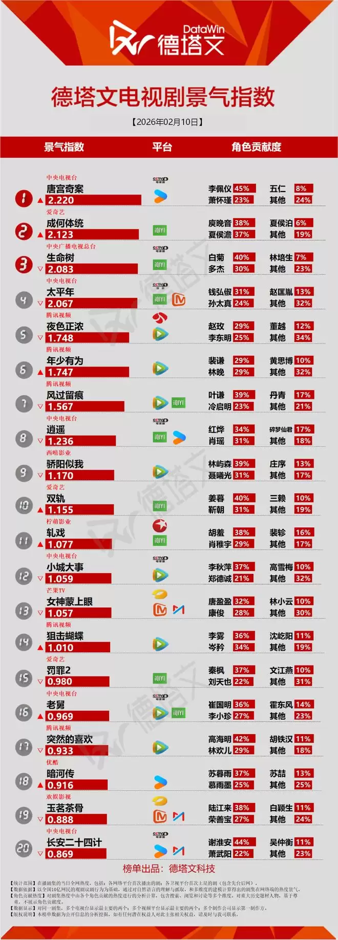 唐宫奇案(李佩仪45% 萧怀瑾23%) 成何体统(庾晚音38% 夏侯澹37%) 生命树(白菊40% 多杰30%) 太平年 夜色正浓 年少有为 风过留痕 逍遥 骄阳似我 双轨 轧戏 小城大事 女神蒙上眼 狙击蝴蝶 罚罪2 老舅 突然的喜欢 暗河传 玉茗茶骨 长安二十四计