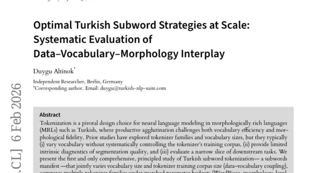 在人工智能快速发展的今天,大多数AI模型都专门为英语等主流语言量身定制,而像土耳其语这样的复杂语言往往被忽视。这项由柏林独立研究团队主导的开创性研究发表于2026年2月的剑桥期刊,研究编号为arXiv:2602.06942v1,为我们带来了第一个也是唯一一个针对土耳其语词汇分解策略的全面系统性研究。