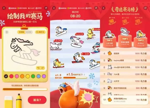 本次新春企划突破传统春节活动模式,深度贴合年轻群体潮玩需求,精心打造专属玩法,例如用户可发挥创意,手绘专属赛马形象。而且只需分享活动,即可参与幸运抽奖,有机会赢取广州热雪奇迹滑雪券、六福珠宝运财陶陶马等重磅好礼;“奇迹赛马榜”前100名实力玩家,更可额外斩获酷狗概念版畅听VIP专属奖励,让马年好运与悦耳旋律一路相伴。