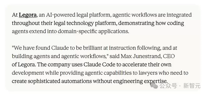 Legora的CEO Max Junestrand表示,Claude在「遵循指令、构建智能体和智能体工作流」方面表现出色。律师可以在没有工程背景的情况下,创建复杂的自动化流程。