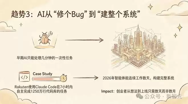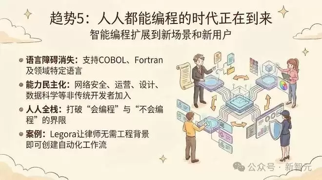 2. 编码民主化超越工程师群体。 网络安全、运维、设计、数据科学——这些「非传统开发者」也能用智能体编码了。Anthropic自家的Cowork工具就是信号。
