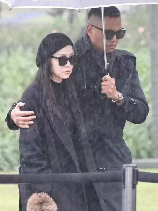 陈建州、范玮琪夫妇也前来悼念大S。夫妻俩神情沉重难掩悲伤,陈建州同样把范玮琪搂在怀里,为她在雨中撑伞。