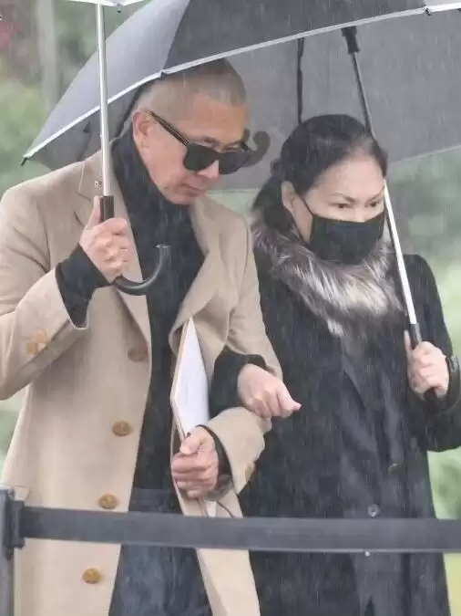 小S与S妈等人一同露面,她的丈夫许雅钧也陪伴在侧。当天下着大雨,许雅钧为小S撑着伞。