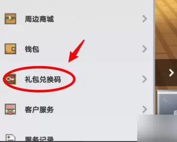 3、这时左侧会弹出功能窗口,在其中找到"礼包兑换码"这个选项并点击,如下图所示。