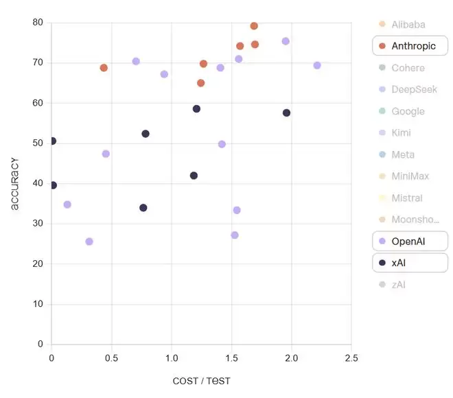 基准测试显示,Grok 4.1 目前在编码基准 SWE-Bench 上得分仅有 58.6%,远远落后于 Claude Opus 4.6(Thinking 模式)的 79.2%。