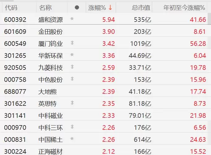 A股稀土股普涨近6%:盛和资源领涨概念板块