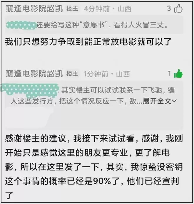 无奈之下,影院负责人步步退让,写了一封又一封意愿书,一遍遍道歉、恳求,承诺一定会保证排片,都没能得到回应,《惊蛰无声》成了压死小影院的最后一根稻草。