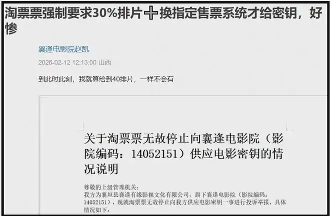 出面发声的当事人是一位十年从业者,他是一家县城影院的负责人,从2025年开始,他负责的影院连续两年被春节档电影发行方干扰排片——2025年是《封神2》,2026年是《惊蛰无声》。