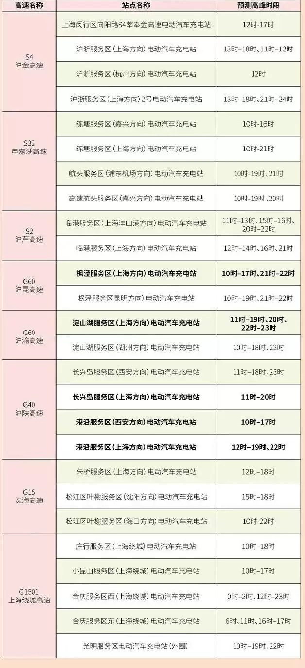 据了解,上海高速路网共计有26个新能源车充电站点。热门站点集中在G60沪昆高速枫泾服务区(昆明方向)电动汽车充电站、G60沪昆高速枫泾服务区(上海方向)电动汽车充电站、G40沪陕高速长兴岛服务区(上海方向)电动汽车充电站、G40沪陕高速港沿服务区(上海方向)电动汽车充电站、S32申嘉湖高速航头服务区(嘉兴方向)电动汽车充电站、S32申嘉湖高速航头服务区(浦东机场方向)电动汽车充电站、G50沪渝高速淀山湖服务区(上海方向)电动汽车充电站、S32申嘉湖高速练塘服务区(上海方向)电动汽车充电站这8个站点。