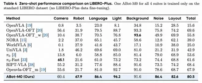 ABot-M0在Libero-Plus的评测