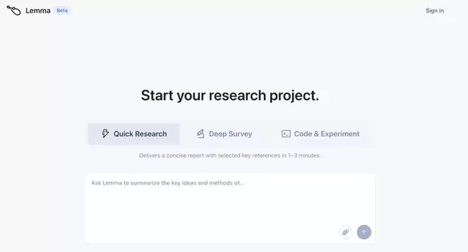 在FARS之前,Analemma已经上线了一个名为Lemma的产品(lemma.analemma.ai),提供快速文献调研、深度调研报告和代码实验三项功能。孙天祥告诉硅星人,Lemma是辅助驾驶,定位是生产力工具;FARS是自动驾驶,定位是基础设施。