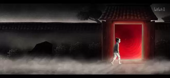 院内枯萎的粉红色花朵还在,墙上的孔隙也依旧是红绿配色,书生望见那扇布满红色漩涡的门,依旧毫不犹疑地走了进去,继续选择被其吞噬。
