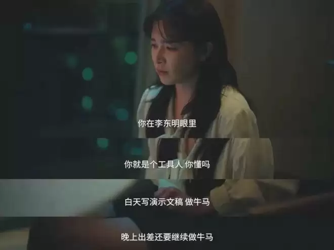 除了身体和尊严的牺牲,她还要承受李东明无休止的精神打压和过度压榨。李东明一不高兴,就会骂她脑子笨、报告写得差,哪怕她是好心安慰,也会被借题发挥。