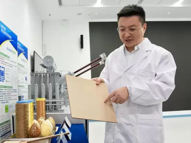 什么是“AI+制造”?在中国电气装备集团科研基地,全国人大代表、中国电气装备集团副总经理张帆举起一块看似寻常的硬纸板说道:“这是特高压变压器的关键材料——绝缘纸板。长期以来,它的原材料被国外巨头垄断,现在我们用AI推算纸浆配比,是突破‘卡脖子’难题的新路径。”
