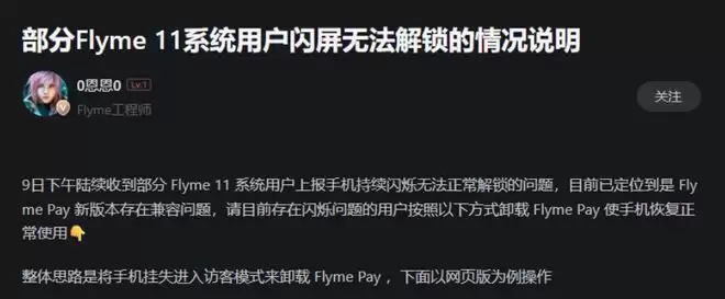 首先让我们先聊聊最让老用户心碎的“闪屏门”,据大量 Flyme 11 老机型用户反馈,手机在近期突然出现频繁闪屏、无法解锁的恶性Bug。