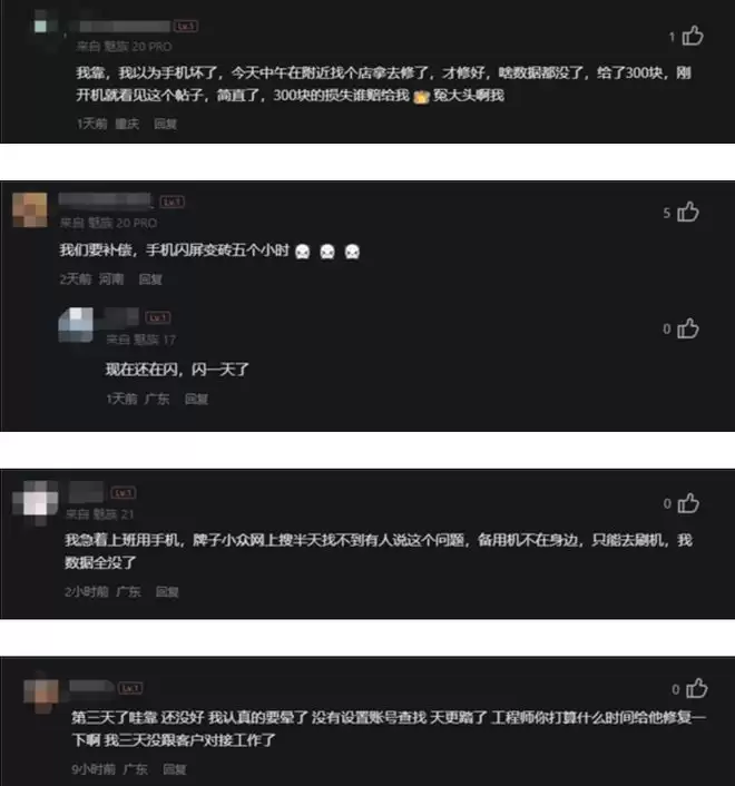 这种低级错误在主流大厂中几乎是不可想象的,更让用户心寒的是魅族的公关处理速度,很多没设置查找手机账号或者没看到论坛帖子的用户,只能眼睁睁看着手机变砖,工作生活被彻底打乱。
