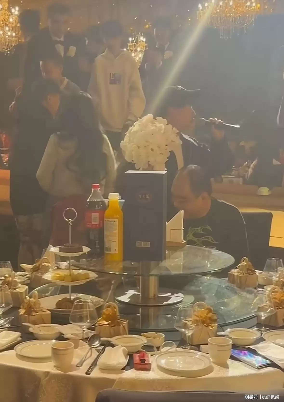 郭麒麟接到捧花后全场起哄,他说完祝福语就立刻坐下了,生怕再被套路。