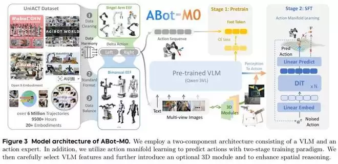 操作侧同样如此。ABot-M0 对 600 万条开源轨迹数据进行统一清洗与标准化,看起来是数据整合问题,实则需要对操作任务的结构、动作表示的差异、不同机器人形态之间的映射关系有深入理解。异构数据的统一,本质上是对任务抽象能力的体现,而不是简单的数据拼接。