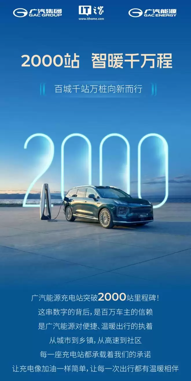 IT之家2月12日快讯,广汽集团今日正式宣布,其自营充电站网络已成功突破2000座大关,实际建成充电站达2002座。
