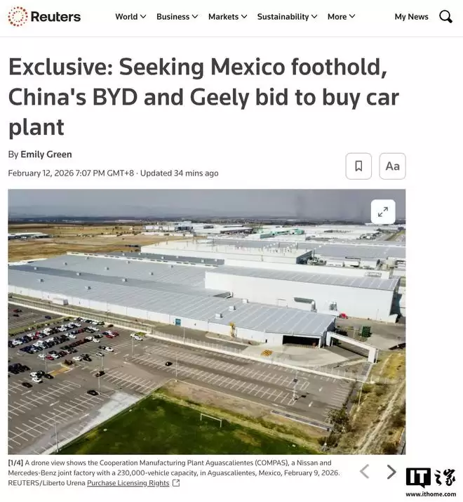 2月12日,IT之家报道称,据路透社最新消息,比亚迪与吉利已入围日产-奔驰墨西哥工厂收购案的最终竞标名单。知情人士透露,在美国关税政策导致墨西哥汽车工厂关闭与裁员加剧的背景下,中国企业正积极寻求在墨西哥建立新的制造基地。