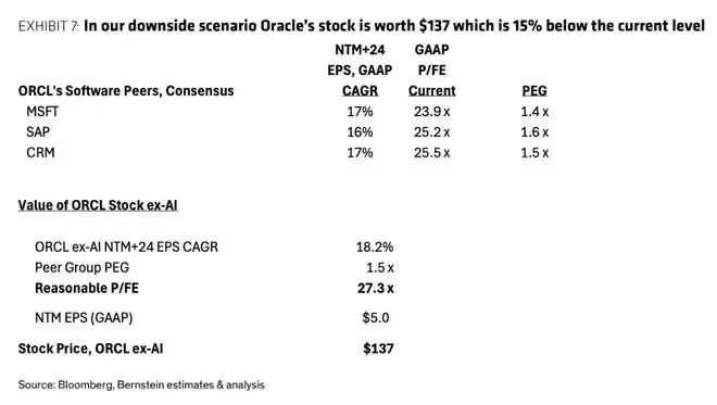 在此极端设定下,伯恩斯坦测算甲骨文估值底线为每股137美元,较当前约160美元的水平仅存在15%的下行空间,为投资者提供了清晰的安全边际。而在乐观情景下,若执行顺利,目标价上看313美元。