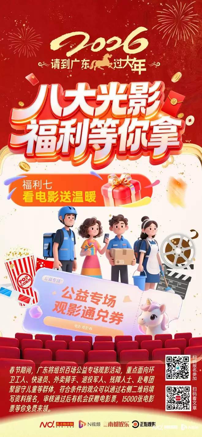 春节档作为我国电影市场的黄金档期,历来是影迷们的期待焦点。2026年春节期间,广东不仅为观众带来了题材丰富、类型多样的电影大餐,更创新性地推出了一系列“电影+”跨界联动活动,将观影与文旅、消费、公益深度融合,打造了一场贯穿整个春节假期的光影盛宴,让市民游客在享受大银幕视听乐趣的同时,感受南粤独特的春节文化魅力。