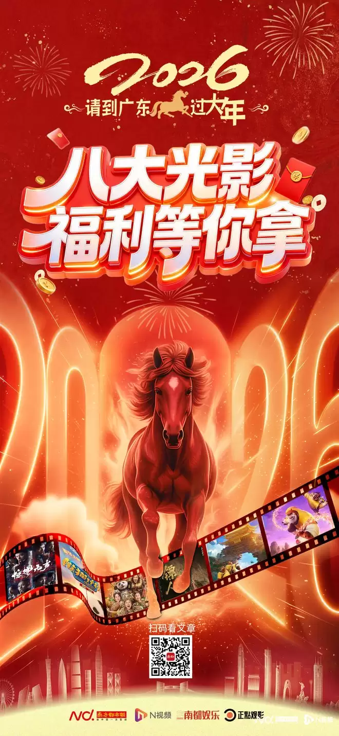 2026 年春节期间,广东通过丰富多样的电影供给和创新多元的“电影+”跨界联动活动,为广大市民游客打造了一场精彩纷呈的光影盛宴。从题材丰富的影片矩阵,到文旅融合的特色活动;从惠及民生的消费优惠,到传递温情的公益放映,广东将电影文化与春节传统、地方特色、民生需求有机结合,不仅丰富了群众的精神文化生活,也带动了相关产业的发展,为春节假期注入了浓厚的文化氛围和旺盛的消费活力。