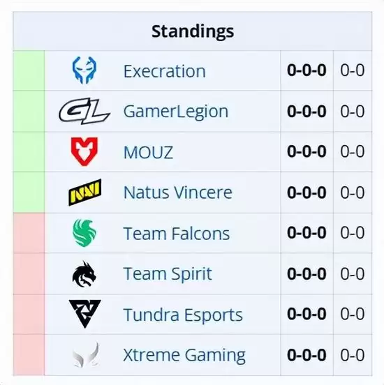 第二阶段:8支晋级队伍展开单循环BO3较量,前两名进入淘汰赛胜者组,第三、四名落入淘汰赛败者组,剩余四支队伍在此阶段结束征程。