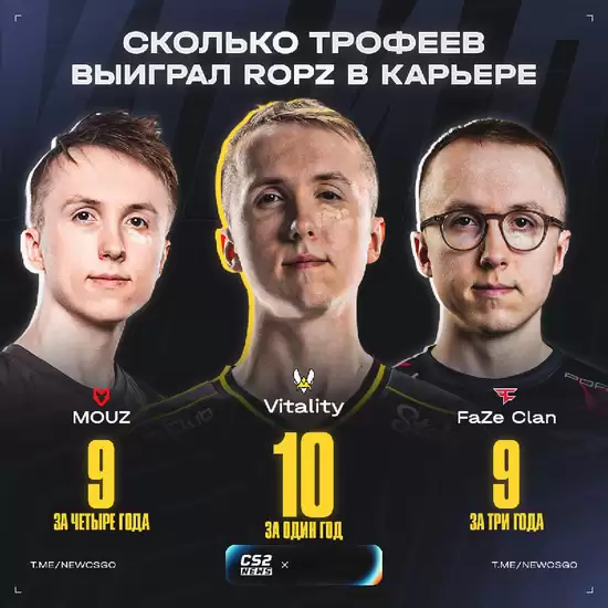 ropz加入Vitality一年夺冠数超MOUZ四年与FaZe三年总和