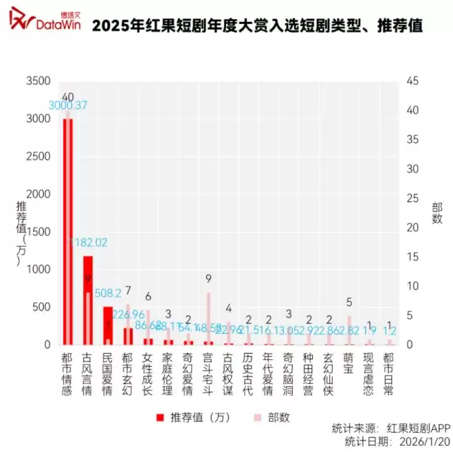 “都市情感”以超4成占比霸榜,近3000万推荐值看似风光,实则是极度饱和的红海厮杀。这个赛道的准入门槛最低,也最容易被AI产能冲击。