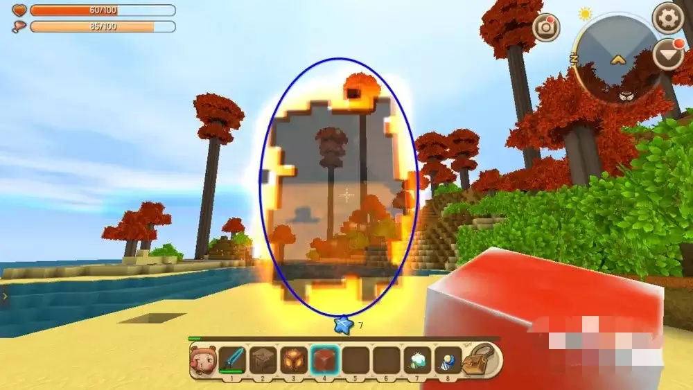 拿出工作台,接下来需要收集原材料。蓝晶石块在普通矿区的底部可以开采到不少;曙光石块在地狱里随处可见。消耗8个曙光石块和1个蓝晶石块,就能制作出岩石结晶。