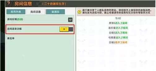 3、进入新界面后,找到房间语音功能,点击右侧的开关按钮,选择开启。