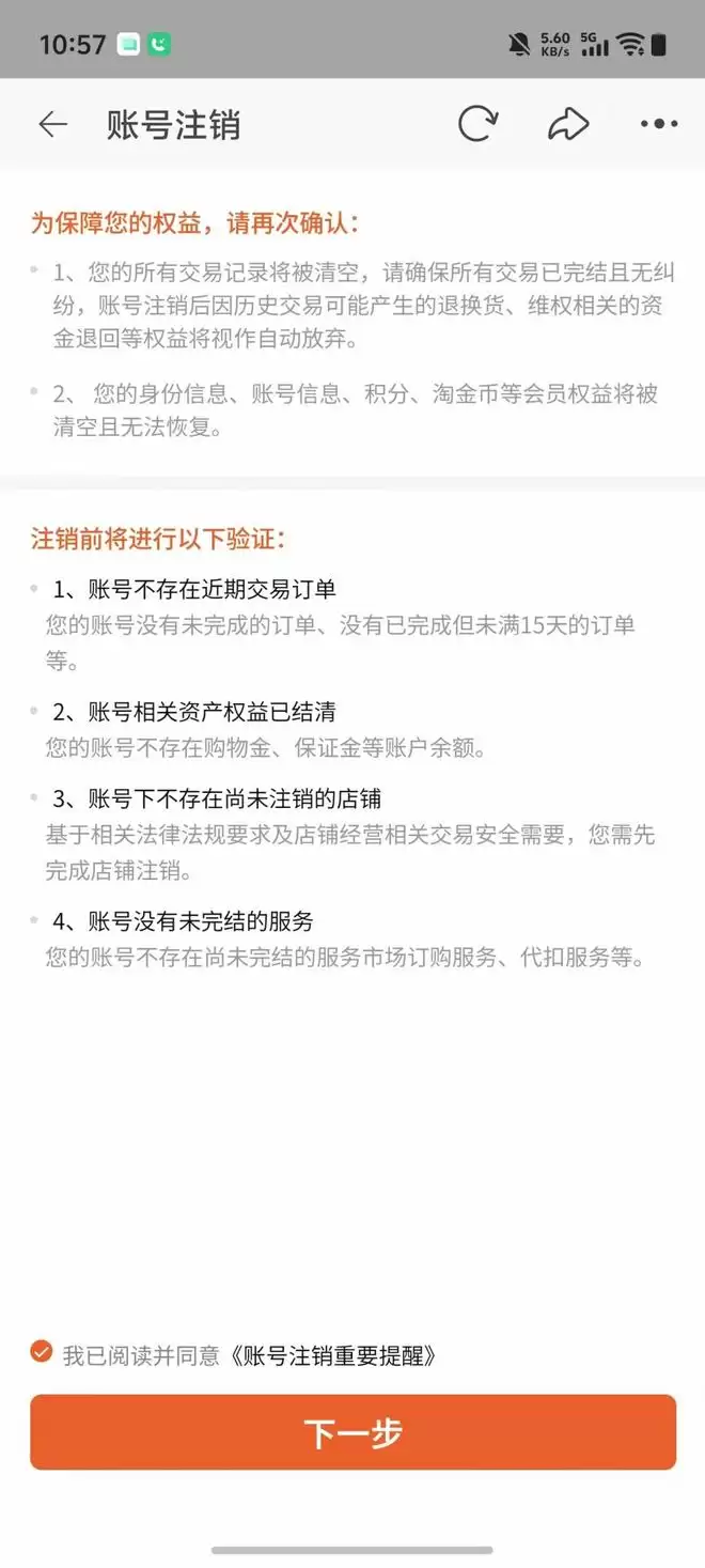 淘宝平台在注销账户时,未提示会影响到盒马平台的账户。