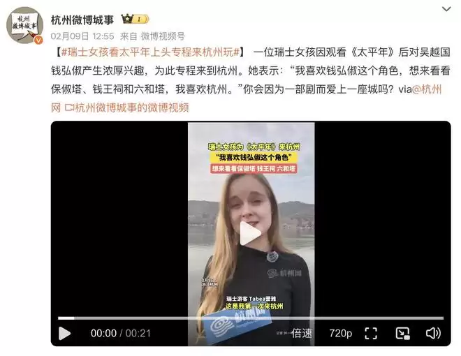 还有瑞士游客看了《太平年》后专程来到杭州:“我喜欢钱弘俶这个角色,想来看看保俶塔、钱王祠和六和塔。”