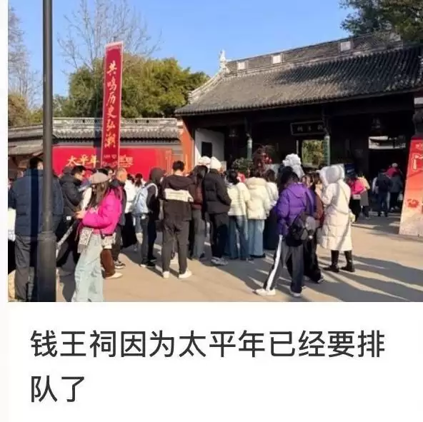 曾经西湖边相对“小众”的景点钱王祠,如今成了杭州顶流,景区门口排起长队。