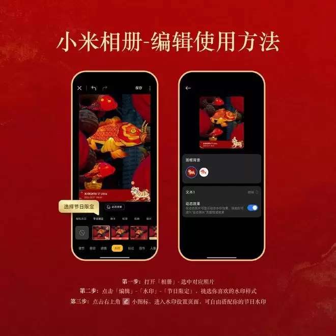 IT之家注意到,除了春节水印外,小米还为用户带来了“相册编辑AI玩法-新春特效”,可一键生成新年贺卡、拜年视频。用户可在2026年2月10日至3月3日期间使用。