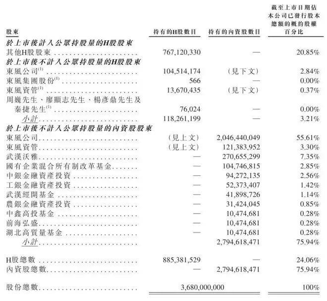 截至最后实际可行日期,东风集团股份及东风资管(均为东风公司的附属公司)分别直接持有岚图汽车已发行股本总额约79.67%及3.30%,而武汉沃雅(其执行事务合伙人(辕憬管理)为东风资管之附属公司)直接持有岚图汽车已发行股本总额约7.35%。